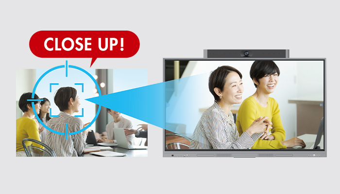 話者・個人・集団をAIが感知し、自動でクローズアップ。誰が話しているかが一目でわかり、遠隔会議でも臨場感アップ。